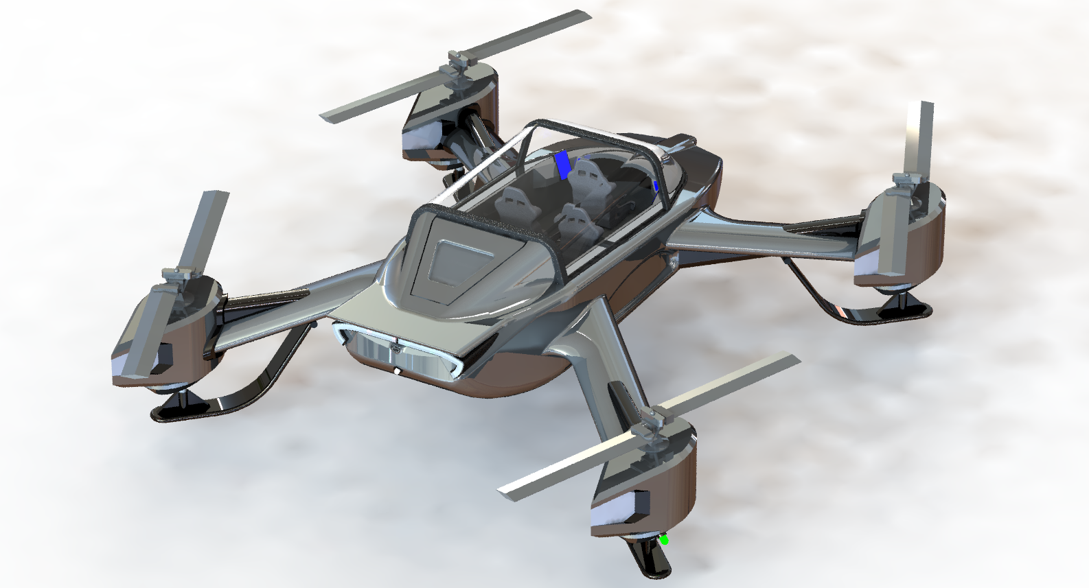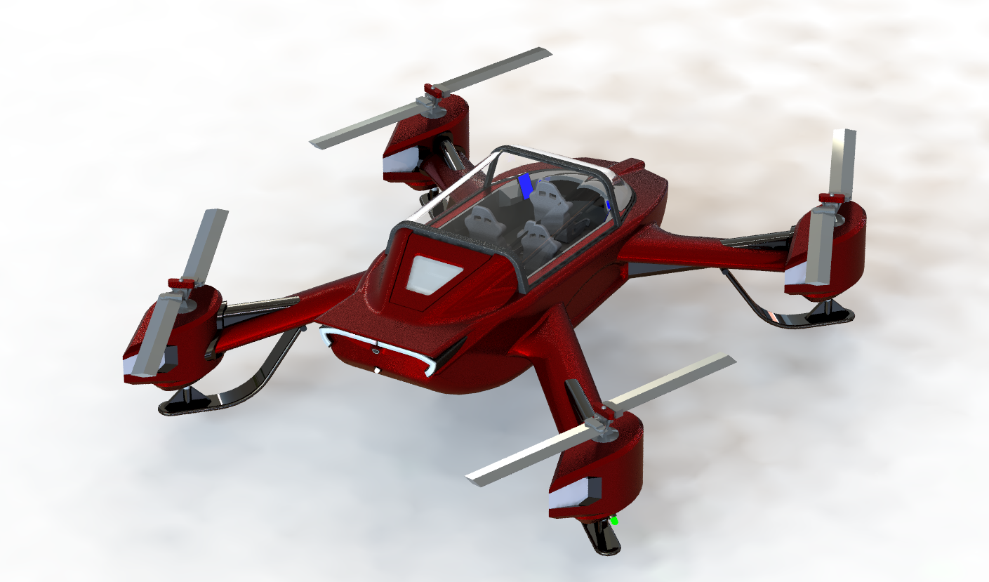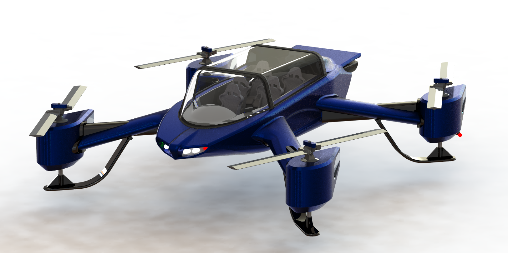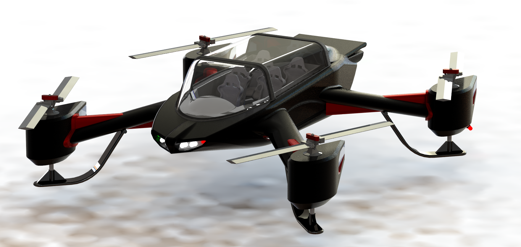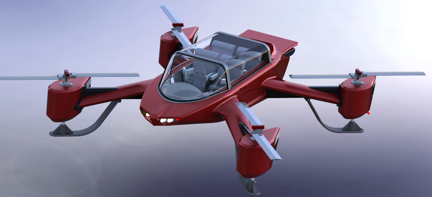 Five Passengers. One Pilot. Remote Flight. First Class Amenities. All Electric Function. Hybrid Power. Carbon Fiber Chassis. Dual-Axial Rotors. VTOL. Ballistic Parachutes. Autorotation. Laser Guided Landing System. WiFi. Encrypted Flight Controls. Lands and Floats On Water.